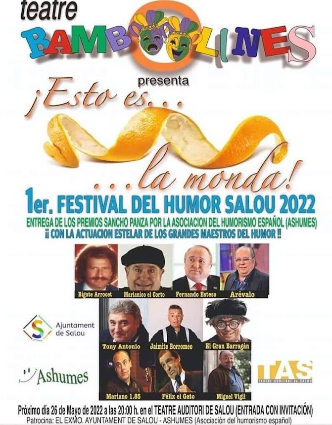 Han actuado: Jaimito Borromeo; Fernando Esteso; Arévalo; Bigote Arrocet; Tony Antonio; Miguel Vigil (Académica Palanca y Cómicos de Guardia); el señor Barragán; Marianico el Corto y Mariano Vázquez que ha orquestado todo desde antes de la pandemia, teniendo que aplazar y esperar. Ha valido la pena, emocionarse con personas tan queridas. Bravo Ayuntamiento de Salou, cómplice de Mariano Vázquez y ojalá sirva de ejemplo para futuros eventos que premien a los artistas de toda la vida, en ese caso con el “Sancho Panza” que otorga la Asociación de Humoristas Españoles y con la efigie del Rey Jaume I.