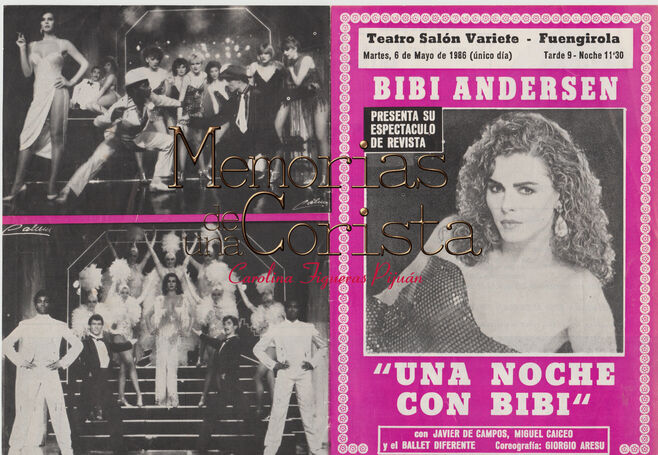 Bibiana Fernández AKA Bibi Andersen, la artista que modernizó el repertorio de las variedades, saltando del espectáculo de sala de fiestas, cigarrillo y copa, a la gira de revista en teatros, con adaptaciones singulares de temas números uno, entre ellos: “MI PROPIA LEY” (Crunchy granola suite de Neil Diamond), “MANO NEGRA” (No, no never de Mat Bianco), “FIESTA” (All night long de Lionel Ritchie) “BANANAS” y “TIENES UN OSCAR MUJER” un final de apoteosis nada convencional.