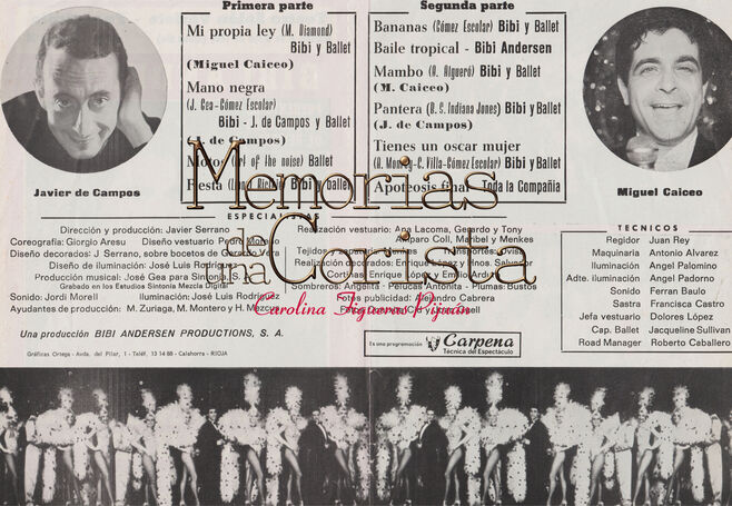 Una compañía como pocas, muestra de un compañerismo ejemplar. Solamente quienes estuvimos allí sabemos lo que sucedió; ni todo lo que imaginas ni lo que crees que conoces. Una gira salvada, “mantenida” durante cerca de 7 meses, por la voluntad de los bailarines, por los dos humoristas Javier de Campos y Miguel Caiceo y por el equipo técnico, a pesar de los graves problemas de cobro.