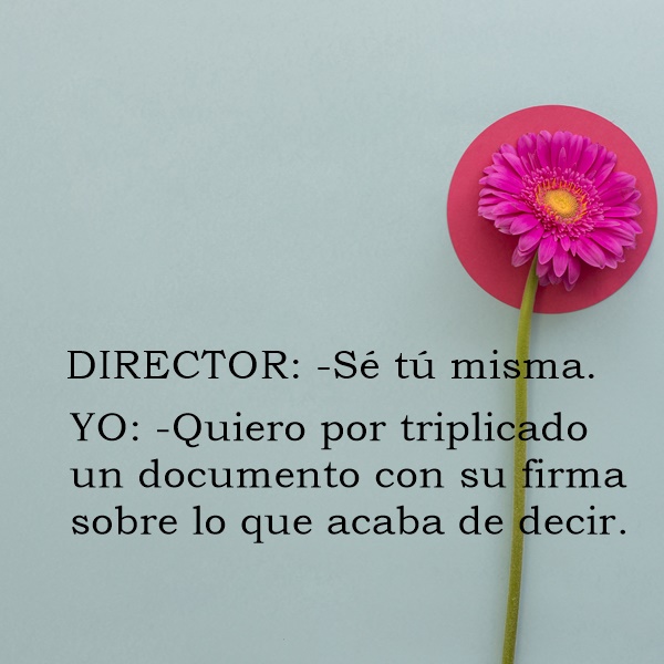 Huye de quienes te piden que seas “tú misma”, de aquellos que aplauden tus ocurrencias, tus ideas y tu valor, porque serán los primeros en censurarte, criticarte y anularte cuando tu espontaneidad no les convenga.
