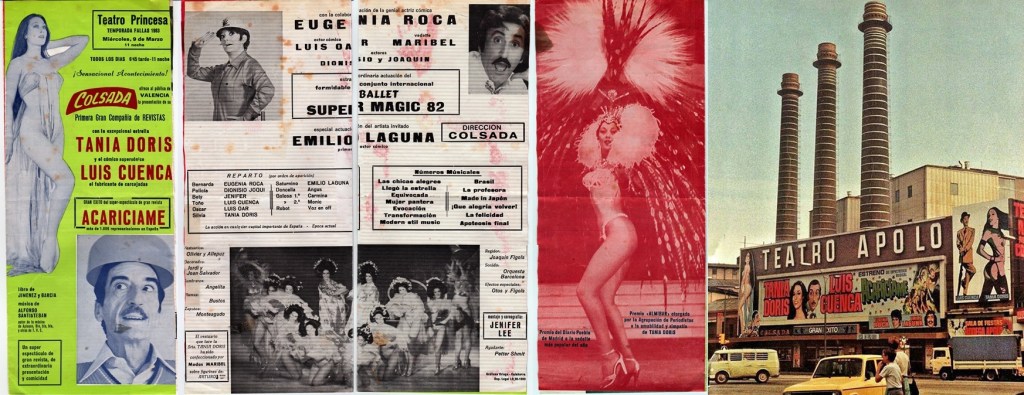En septiembre y octubre de 1981, y desde febrero de 1983 hasta septiembre de 1985 participé como corista, vedette-soubrette, capitana de ballet, primera bailarina y coreógrafa, en distintas obras del Teatro Apolo de Barcelona; Teatro Princesa de Valencia; Teatro Fleta de Zaragoza, Teatro Principal de Alicante y Teatro Monumental de Madrid, además de 4 giras por España, con: